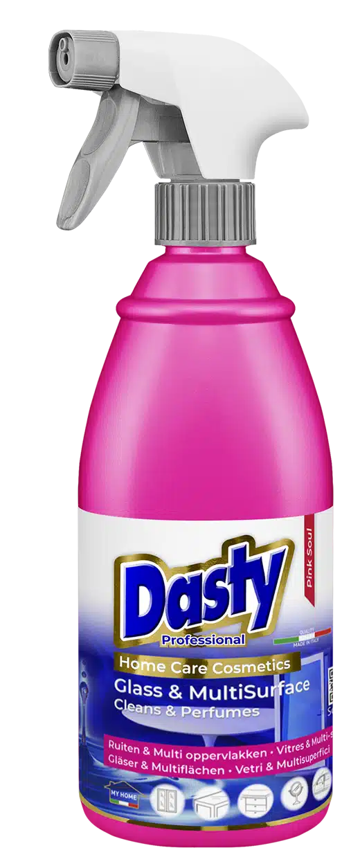 DASTY GLASS & MULTISURFACE är ett super parfymerat rengöringsmedel för rengöring av glas, fönster, speglar, kristaller, bilrutor, rostfria ytor och alla tvättbara ytor. Den fångar upp damm mer effektivt än bara en torr trasa, vilket eliminerar fläckar och märken från alla ytor. Det lämnar inga glorior. Den är idealisk för daglig användning och lämnar en intensiv doft i alla miljöer. Dasty Glass & Multisurfaces är en riktig kosmetika för ditt hem.